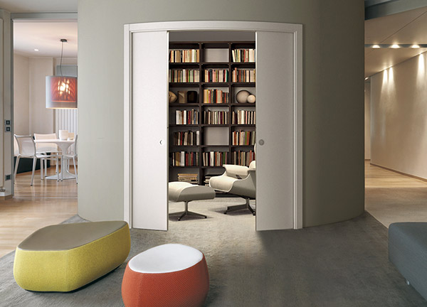 Eclipse Circular Estensione позволяет установить пенал для двух радиусных раздвижных дверей внутри радиусной стены. Две створки открываются с эффектом, похожим на эффект театральной сцены, увеличивая окружающее пространство.